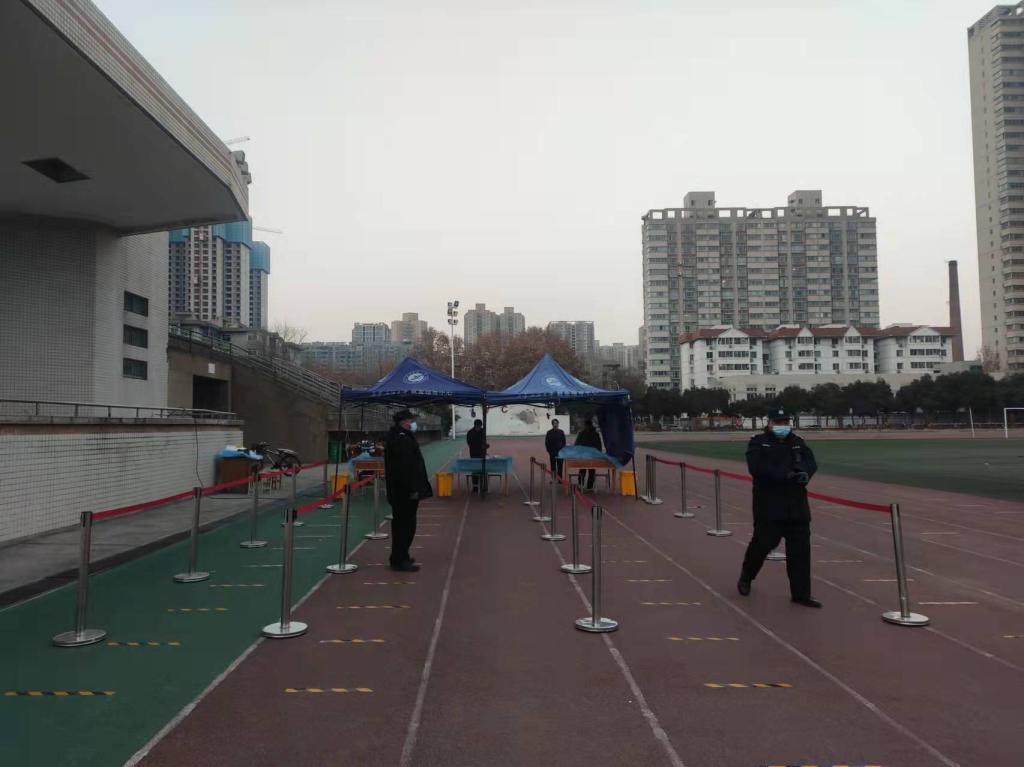 封閉大門、嚴格管控的同時,全力配合學(xué)校開展全員核酸檢測工作。抽調(diào)骨干隊員和門崗下班的保衛(wèi)干部繼續(xù)到核酸檢測現(xiàn)場執(zhí)行安保工作。開展核酸檢測通道設(shè)置、“一米線”粘貼、秩序維護等一系列工作,確保核酸檢測現(xiàn)場安全、有序。截止12月30日,已順利完成了我校第十輪核酸檢測安保任務(wù)。在核酸檢測點入口處,執(zhí)勤干部、隊員發(fā)現(xiàn)異常情況,及時報學(xué)校疫情防控辦進行處置。