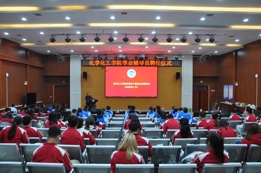 為深入貫徹落實《中共西安石油大學委員會關于進一步加強本科生班級建設的實施意見》(西石大黨生〔2021〕42號)精神,構建本科生“三位一體”學風建設協(xié)同育人體系,11月29日晚,化學化工學院在鄠邑校區(qū)崇文樓就業(yè)指導中心多功能廳舉辦學業(yè)輔導員聘任儀式暨班干部綜合素質培訓大會。校黨委副書記張木出席,學生工作部部長王亮,學生工作部副部長樊曉旭,化學化工學院黨委副書記祁帆參加聘任儀式。儀式由化學化工學院學工辦主任周鈺桐主持。