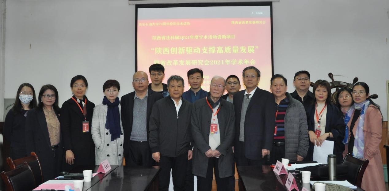 11月12日,慶祝建校70周年系列活動“陜西創(chuàng)新驅(qū)動支撐高質(zhì)量發(fā)展”暨省改革發(fā)展研究會2021年學術(shù)年會在我校雁塔校區(qū)東方石油樓1507會議室召開,會議采取網(wǎng)絡同步直播形式,便于場外人士收聽和互動。本次會議由陜西省社科聯(lián)、陜西省改革發(fā)展研究會主辦,我校經(jīng)濟管理學院和社科聯(lián)承辦。我??倳嫀煼畷悦?,陜西省社會科學界聯(lián)合會學會部部長張金高,陜西省改革發(fā)展研究會長曾昭寧出席會議,陜西省改革發(fā)展研究會專家顧問、會員等高校學者20余人參加現(xiàn)場會議,280余人在線參加會議。陜西省改革發(fā)展研究會常務副會長、我校經(jīng)濟管理學院院長王君萍主持開幕式。