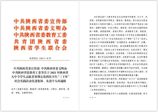 [捷報快遞]我校在2021年陜西省大中專學(xué)生志愿者暑期“ 三下鄉(xiāng)”社會實(shí)踐活動中獲多項(xiàng)獎勵