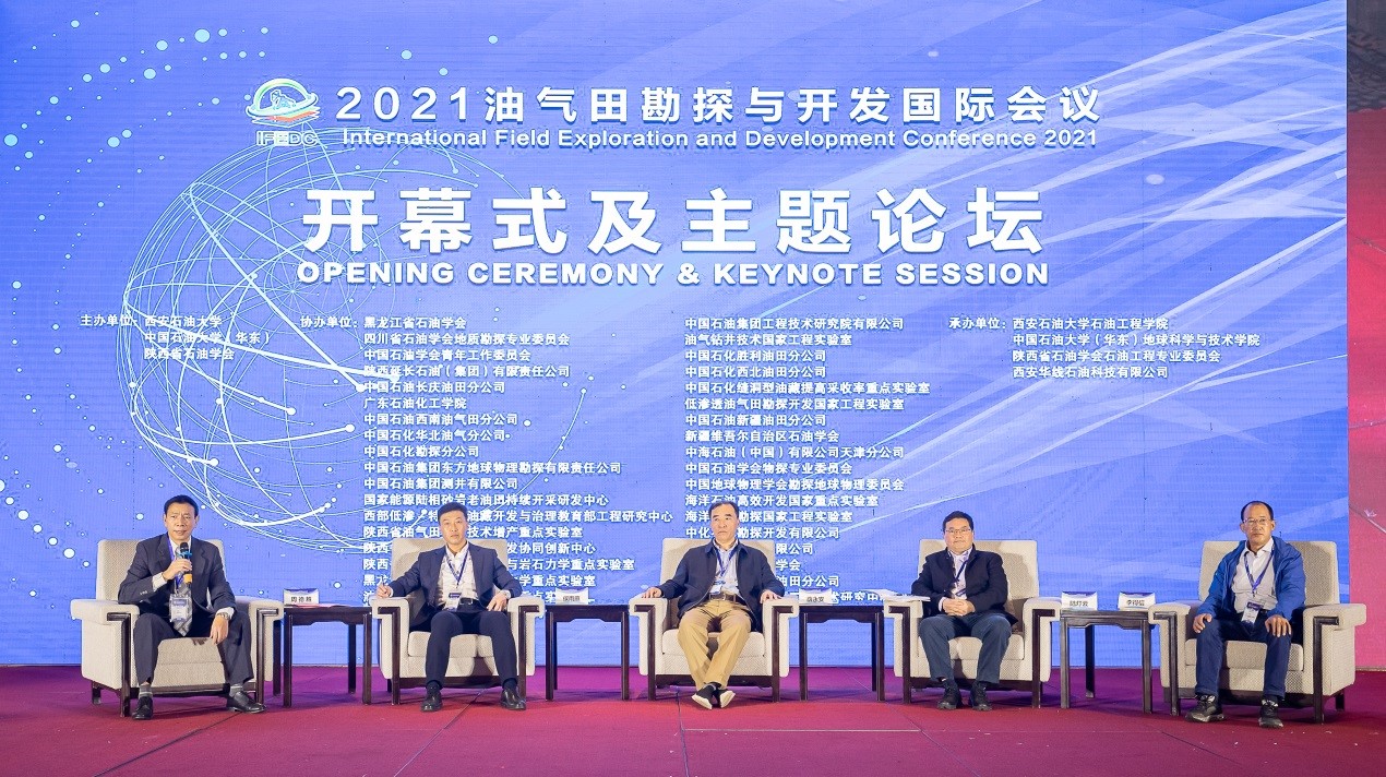 近日,由我校、中國石油大學(華東)、陜西省石油學會聯(lián)合主辦的2021油氣田勘探與開發(fā)國際會議在青島開幕。會議采取線上線下相結(jié)合的方式,圍繞“監(jiān)測技術(shù)驅(qū)動油氣高效開發(fā)”的主題,從監(jiān)測技術(shù)角度探討如何利用人工智能實現(xiàn)油氣田的高效勘探與開發(fā)。主辦方中國石油大學(華東)副校長姚軍作為東道主致歡迎詞,我校副校長張榮軍代表會議主辦方及會議發(fā)起單位講話。大會開幕式和主題論壇由我校石油工程學院院長周德勝主持。