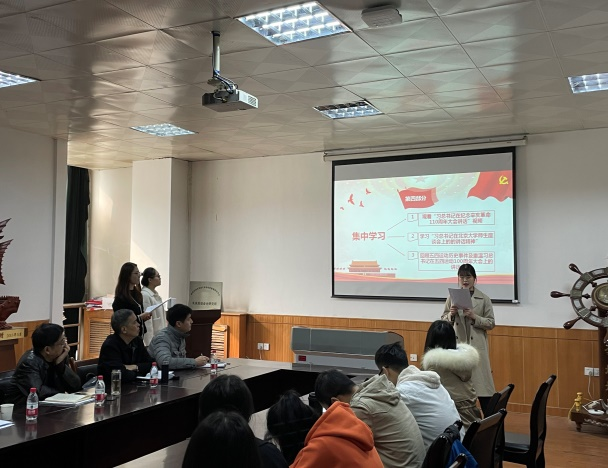 會(huì)上,黨支部書記閆歡介紹了黨支部基本情況,匯報(bào)了黨支部自成立以來在支部建設(shè)、黨員發(fā)展、學(xué)習(xí)教育、主題黨日活動(dòng)等方面的工作情況,以圖文并茂的形式展示了黨支部特有的志愿活動(dòng)風(fēng)采。黨支部組織委員刁書琪安排了近期學(xué)習(xí)教育活動(dòng),帶領(lǐng)與會(huì)黨員集中觀看了習(xí)近平總書記在紀(jì)念辛亥革命110周年大會(huì)上的講話視頻、深入學(xué)習(xí)了習(xí)近平總書記在北京大學(xué)師生座談會(huì)上的重要講話。黨支部紀(jì)檢委員毛蕊欣帶領(lǐng)大家一起回顧了五四運(yùn)動(dòng)歷史事件,重溫了習(xí)近平總書記在紀(jì)念五四運(yùn)動(dòng)100周年大會(huì)上的講話精神。通過集中學(xué)習(xí),學(xué)生黨員認(rèn)識(shí)到青年一代不僅要熱愛祖國、維護(hù)祖國統(tǒng)一,更要肩負(fù)起中華民族偉大復(fù)興的歷史重任。在研討交流環(huán)節(jié),部分黨員同志結(jié)合自身實(shí)際,從提高思辨能力、加強(qiáng)自身本領(lǐng)、身體力行“為人民服務(wù)”等方面作交流發(fā)言。