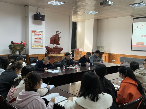 11月5日,經(jīng)濟(jì)管理學(xué)院研2020級(jí)學(xué)碩黨支部“做愛國奮斗的新時(shí)代青年”專題學(xué)習(xí)研討會(huì)在雁塔校區(qū)東方石油1507會(huì)議室召開。學(xué)校總會(huì)計(jì)師樊曉民作為聯(lián)系支部的校領(lǐng)導(dǎo)出席會(huì)議參加學(xué)習(xí)研討,并為與會(huì)學(xué)生黨員講授專題思政課,經(jīng)濟(jì)管理學(xué)院黨委書記王宏衛(wèi)、黨委副書記王剛、學(xué)生工作辦公室主任李博文及黨支部全體成員近30人參加會(huì)議。