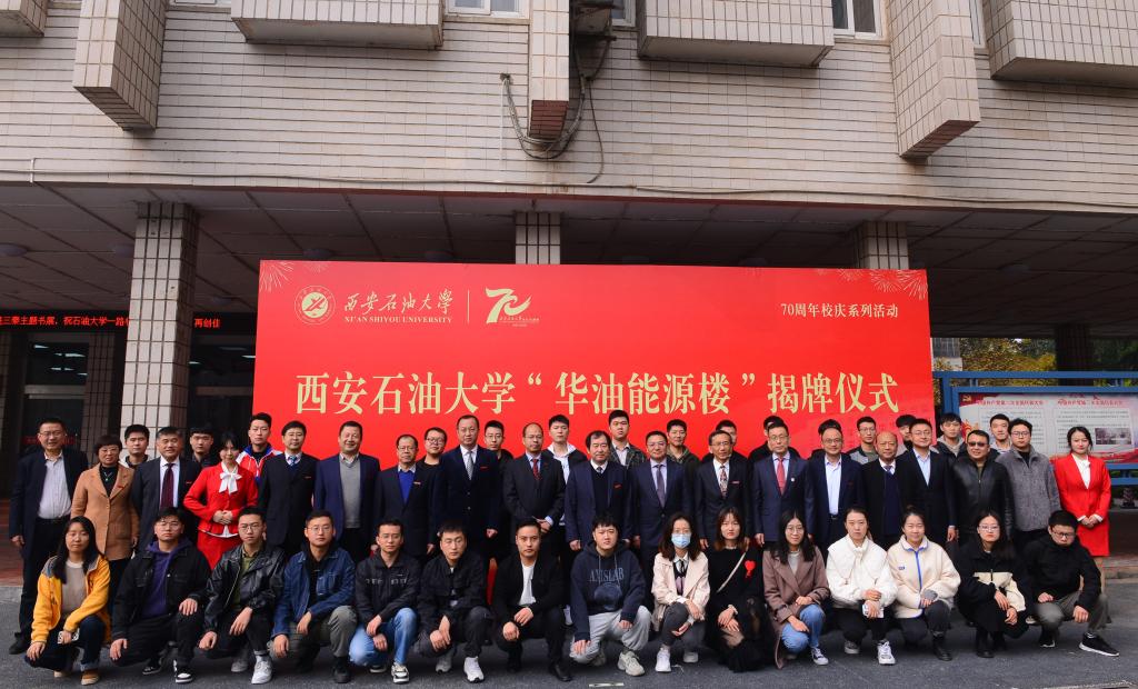 七十年風雨兼程,七十年春華秋實。為慶祝學校70華誕、深化校企合作,11月5日上午,我?!叭A油能源樓”揭牌儀式在雁塔校區(qū)第一教學樓前隆重舉行。華油能源集團有限公司執(zhí)行董事兼行政總裁吳東方、總裁助理文舉,我校黨政領導李天太、張木、雷西合、張榮軍出席揭牌儀式。學校相關職能部門及院系負責人、學生代表參加揭牌儀式。揭牌儀式由校黨委副書記雷西合主持。