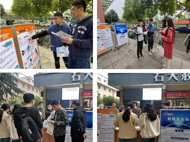 10月12日,學(xué)校下發(fā)了《關(guān)于積極參與2021年國(guó)家網(wǎng)絡(luò)安全宣傳周校園日活動(dòng)的通知》,號(hào)召全校師生積極參與2021年國(guó)家網(wǎng)絡(luò)安全宣傳周校園日系列活動(dòng)。校園活動(dòng)日當(dāng)天,學(xué)校分別在雁塔校區(qū)和鄠邑校區(qū)校車乘車點(diǎn)、食堂等人流量大的區(qū)域放置展板,發(fā)放布袋、知識(shí)手冊(cè)等多種宣傳資料千余份,發(fā)送網(wǎng)絡(luò)安全宣傳短信4000余條。