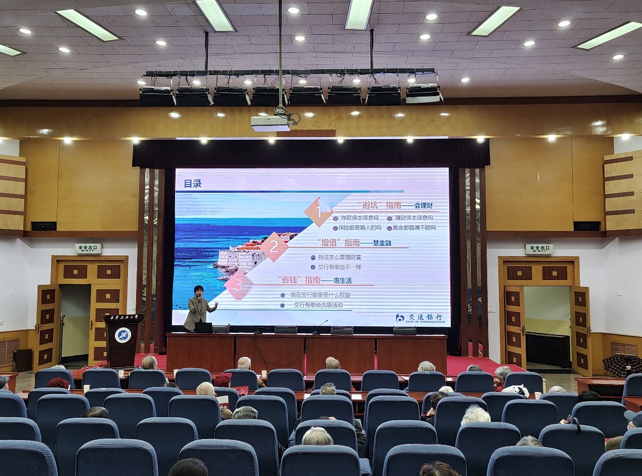 10月15日下午,由離退休職工管理處、財(cái)務(wù)處共同舉辦的“金融服務(wù)進(jìn)校園系列之一——離退休教職工金融知識(shí)講座”活動(dòng),在我校雁塔校區(qū)學(xué)術(shù)報(bào)告廳順利召開。本次講座邀請(qǐng)交通銀行吉祥村支行行長(zhǎng)梁婷、交通銀行陜西省分行個(gè)人金融業(yè)務(wù)部業(yè)務(wù)專員馮雪婷擔(dān)任主講人。學(xué)??倳?huì)計(jì)師樊曉民出席,離退休職工管理處、財(cái)務(wù)處工作人員及100多名離退休教職工參加了講座。