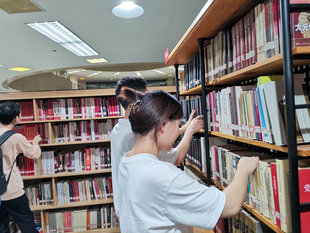 國慶期間,馬克思主義學院研究生在鄠邑校區(qū)圖書館馬列書屋幫助整理書籍,并開展讀書研討活動。學院研究生輔導員童玲老師參與指導,全體留校的2021級研究生參加了此次整理分享交流活動。“馬列書屋”是我校具有代表性的學習馬克思主義教育基地,書屋內(nèi)陳列著經(jīng)典著作以及多個國家不同時期眾多學者對馬克思主義、馬克思主義中國化的著作共500余冊。另有中國共產(chǎn)黨思想理論資源數(shù)據(jù)庫、中國社會科學文庫等11個數(shù)據(jù)庫,包含有關(guān)馬列的電子圖書4060冊及近1.69萬篇有關(guān)馬列的論文(電子版)可供師生學習使用。沉浸式的VR體驗、豐富的文獻資料,極大地幫助了師生實現(xiàn)自我教育和自我提高,為研究生學習馬克思主義打造了堅實的基礎。