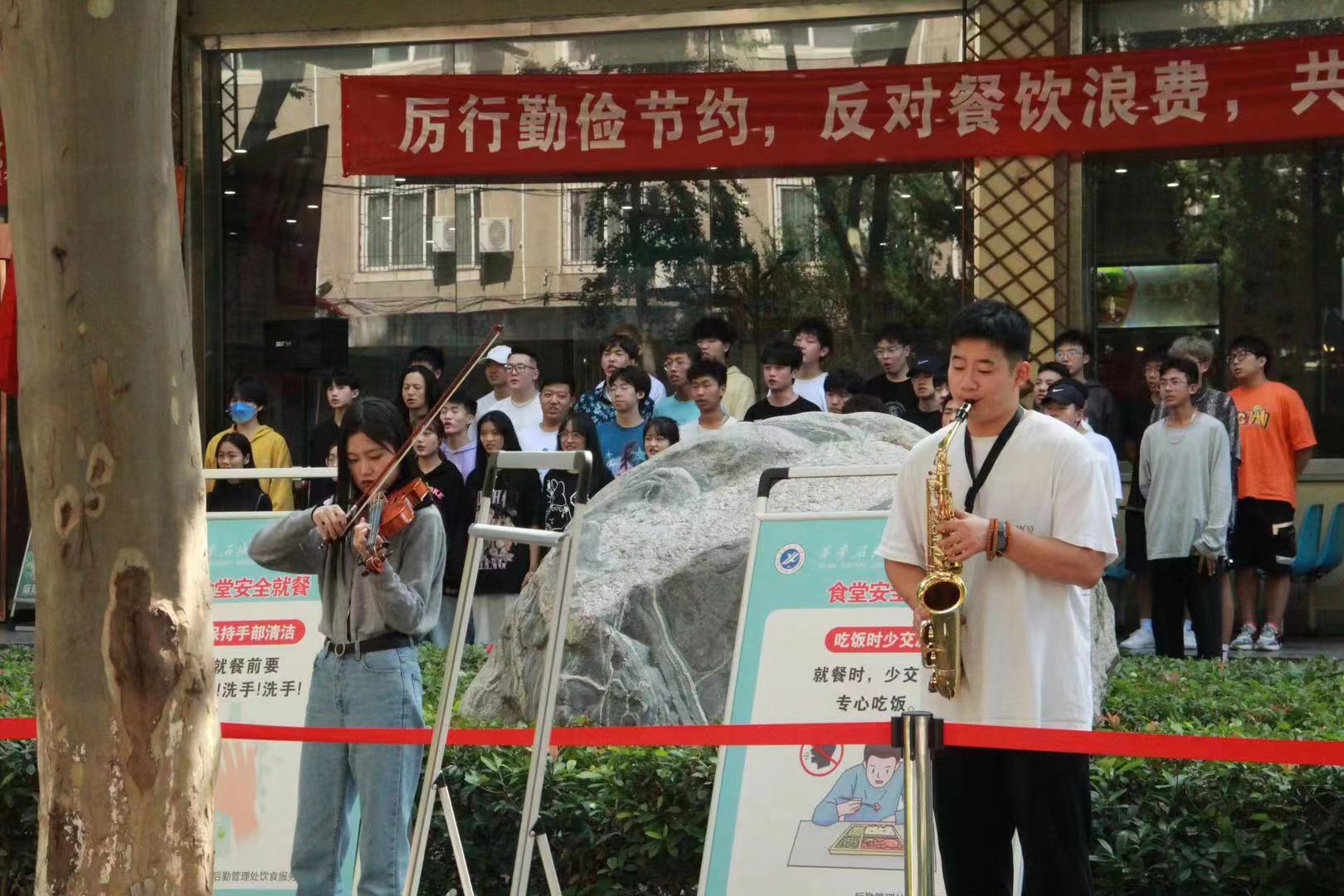 站在兩個(gè)一百年奮斗目標(biāo)的歷史交匯點(diǎn),為慶祝中華人民共和國(guó)72歲華誕和建黨100周年,930日中午,我校音樂(lè)系組織師生在雁塔校區(qū)學(xué)生餐廳舉辦“紅歌快閃”活動(dòng),吸引了眾多師生觀看,場(chǎng)面熱烈。副校長(zhǎng)陳軍斌,紀(jì)委、規(guī)劃處、石油工程學(xué)院、經(jīng)濟(jì)管理學(xué)院、音樂(lè)系主要負(fù)責(zé)人,以及80余名音樂(lè)系師生參加了本次紅歌快閃活動(dòng)。該活動(dòng)由音樂(lè)系黨總支策劃,何云、毛楠、朱玥三位老師指導(dǎo)。音樂(lè)系已連續(xù)四年五次舉辦紅歌快閃活動(dòng),唱響主旋律,展現(xiàn)師生良好的精神風(fēng)貌。
