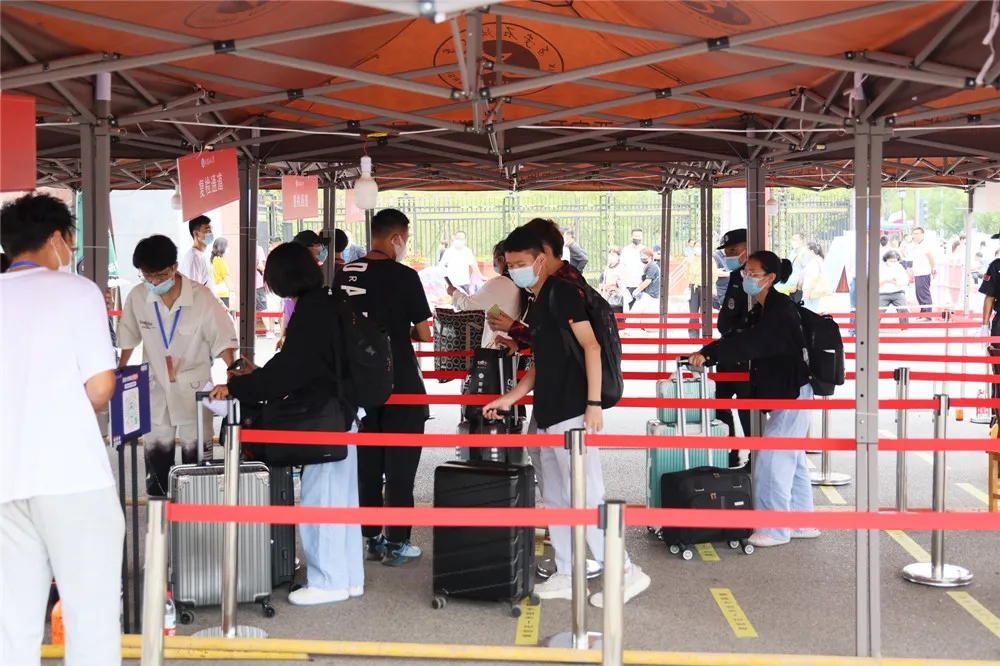 研究生工作部周密安排,認(rèn)真部署,組織70余名研究生志愿者,提前預(yù)備雨衣、手推車(chē)等,便于雨天幫助新生搬運(yùn)行李;熱情引導(dǎo)、悉心辦理報(bào)到手續(xù),有序發(fā)放校徽、校園平面圖、校園疫情防控工作須知、致2021級(jí)研究生的一封信等,報(bào)到現(xiàn)場(chǎng)秩序井然、氣氛熱烈。