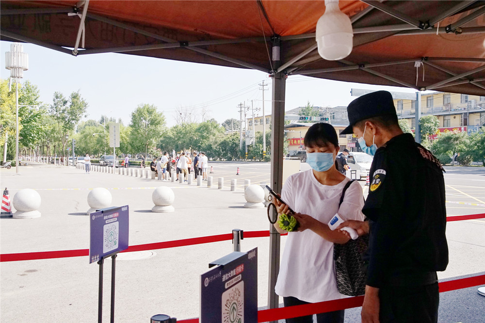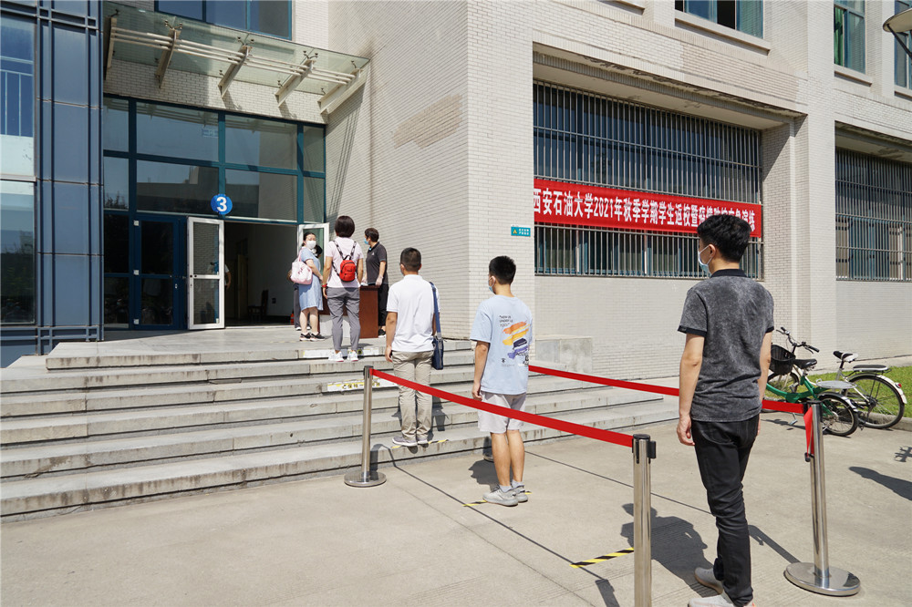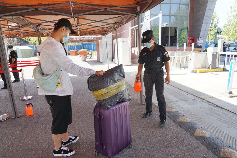 在鄠邑校區(qū)東門演練現(xiàn)場(chǎng),返校學(xué)生按照地面標(biāo)線,間隔一米有序排隊(duì)準(zhǔn)備入校,在工作人員引導(dǎo)下間隔1米有序排隊(duì)接受進(jìn)校檢查,經(jīng)過(guò)工作人員引導(dǎo)、體溫檢測(cè)、身份核驗(yàn)和健康碼、大數(shù)據(jù)行程碼查驗(yàn)、行李消毒等程序后有序安全入校。對(duì)健康碼顯示“黃碼”或“紅碼”以及體溫出現(xiàn)“異常”的同學(xué),工作人員迅速分隔第一現(xiàn)場(chǎng),疏散周圍人群,將該學(xué)生帶至臨時(shí)留觀點(diǎn)再次復(fù)核,仍顯示異常者,立即啟動(dòng)應(yīng)急處置。