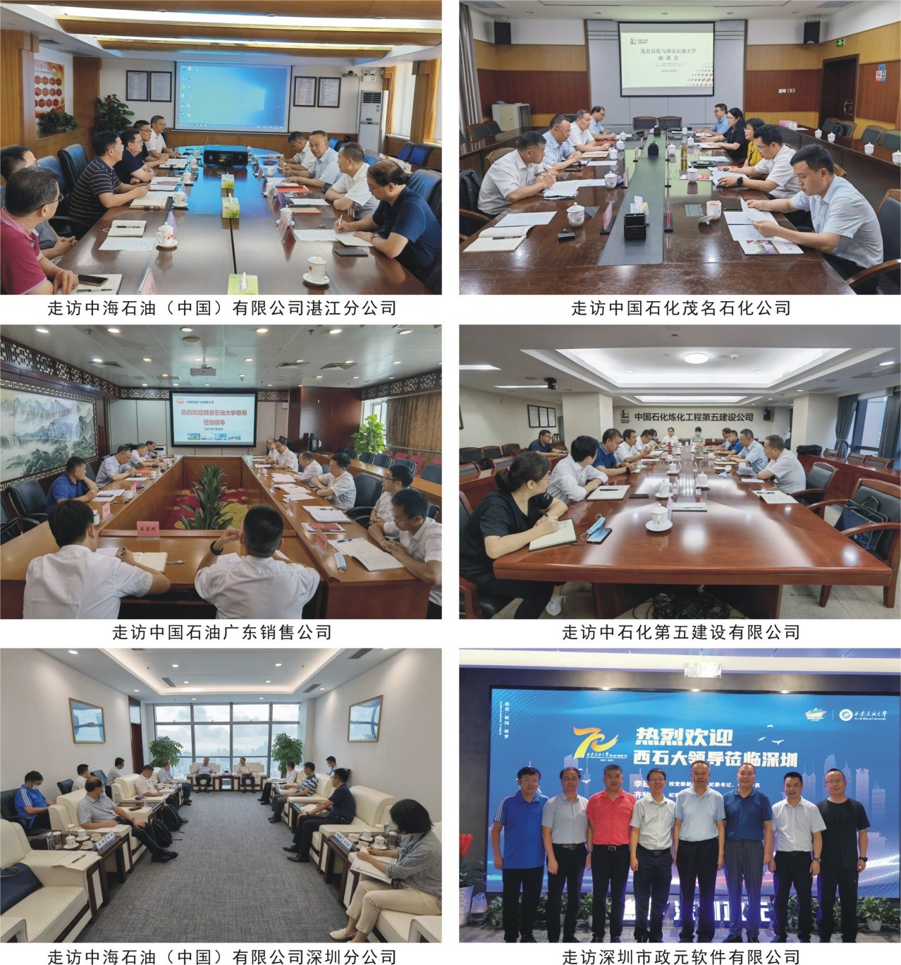 726日至81日,校黨委副書(shū)記、紀(jì)委書(shū)記、監(jiān)察專(zhuān)員李延平帶隊(duì)先后走訪(fǎng)了中海石油(中國(guó))有限公司湛江分公司、中國(guó)石化茂名石化公司、中國(guó)石油廣東銷(xiāo)售公司、中國(guó)石化第五建設(shè)有限公司、中海石油(中國(guó))有限公司深圳分公司、深圳市政元軟件有限公司(校友企業(yè))等6家企業(yè)。