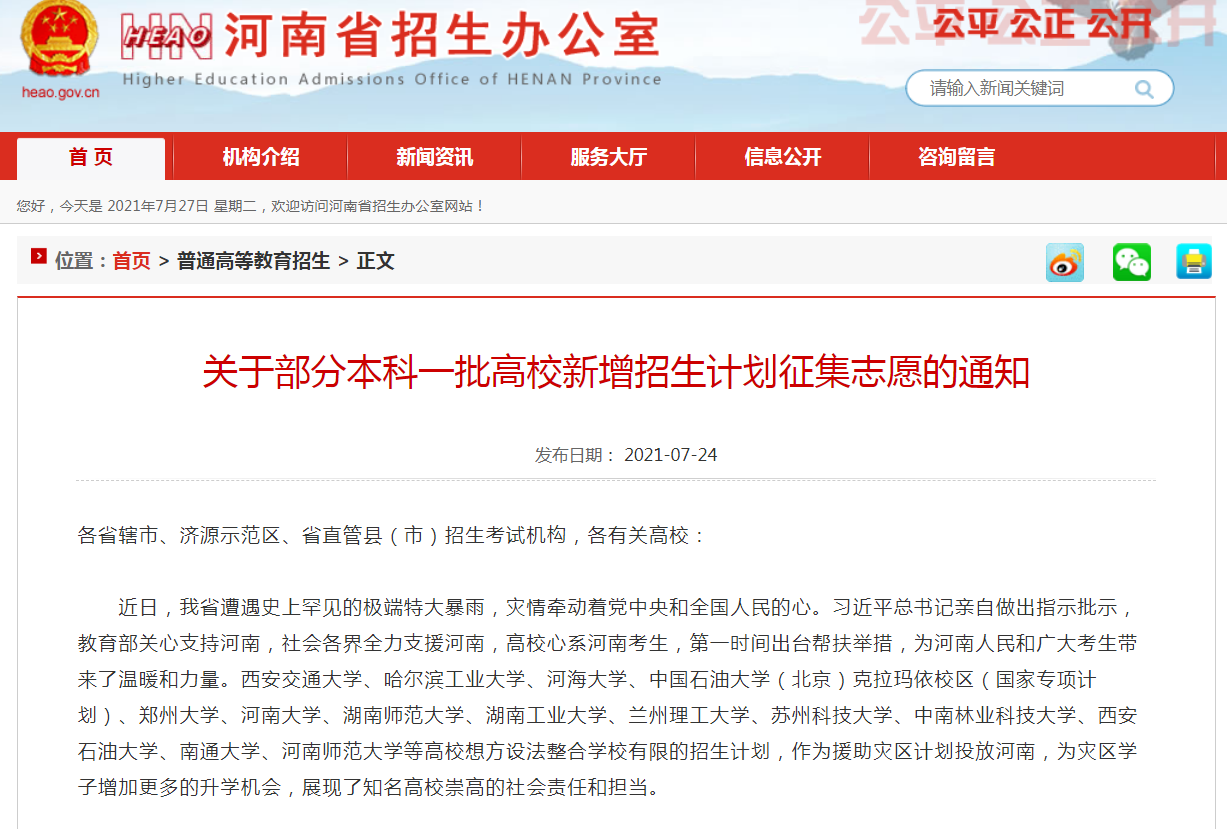 據(jù)悉,本次新增計劃與已發(fā)布的國家專項、本科一批征集志愿合并進行,錄取工作已順利開展。