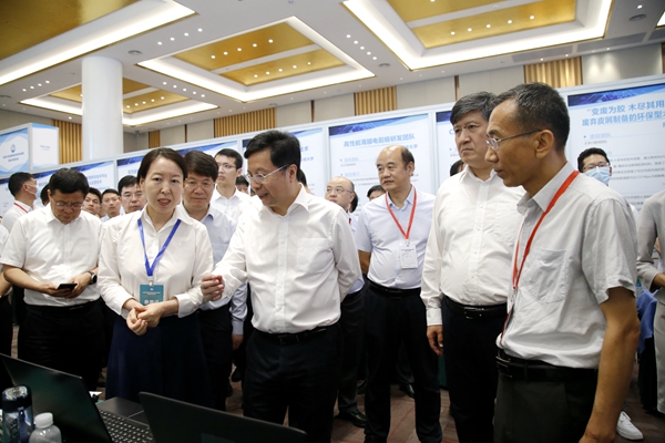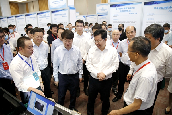 為落實(shí)秦創(chuàng)原創(chuàng)新驅(qū)動(dòng)平臺(tái)建設(shè)大會(huì)精神,加速“兩鏈”深度融合,推動(dòng)陜西省高校創(chuàng)新成果向秦創(chuàng)原匯聚,7月18日,由省教育廳、省科學(xué)技術(shù)廳、省工業(yè)和信息化廳、省人民政府國(guó)有資產(chǎn)監(jiān)督管理委員會(huì)、省工商業(yè)聯(lián)合會(huì)主辦的“秦創(chuàng)原·第五屆陜西省高校科技成果展暨校企對(duì)接洽談會(huì)”在秦創(chuàng)原“總窗口”——西咸新區(qū)召開(kāi)。省委副書(shū)記胡衡華、副省長(zhǎng)方光華、副省長(zhǎng)程福波、省委教育工委書(shū)記王建利、省教育廳廳長(zhǎng)劉建林等領(lǐng)導(dǎo)在我校黨委副書(shū)記張木陪同下參觀了我??萍汲晒盗姓刮?,對(duì)我??萍汲晒D(zhuǎn)化工作給予指導(dǎo)與肯定??萍继庁?fù)責(zé)組織參與本次展洽活動(dòng)。