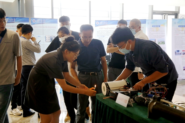 我校設(shè)立了獨(dú)立展臺(tái),通過(guò)展板、模型、樣機(jī)、視頻演示等形式集中展示科技成果,開(kāi)展校企洽談對(duì)接。其中,入選教育廳“最具轉(zhuǎn)化潛力科技成果”的六項(xiàng)成果負(fù)責(zé)人均到會(huì)進(jìn)行了現(xiàn)場(chǎng)講解推介,充分顯現(xiàn)了我??蒲袑?shí)力和成果轉(zhuǎn)化潛力,吸引了多家企業(yè)和創(chuàng)投機(jī)構(gòu)前來(lái)洽談咨詢。