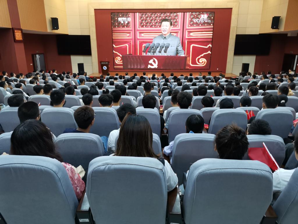 中華民族千秋偉業(yè),百年恰是風(fēng)華正茂,2021年7月1日,慶祝中國共產(chǎn)黨成立100周年大會在北京天安門廣場隆重舉行,中共中央總書記、國家主席、中央軍委主席習(xí)近平發(fā)表重要講話。根據(jù)學(xué)校工作安排,學(xué)生工作部組織全體學(xué)工干部、學(xué)生黨員代表420余人在鄠邑校區(qū)弘石學(xué)術(shù)報告廳收看直播。校黨委副書記張木全程參與收看。