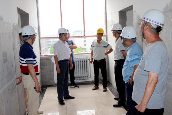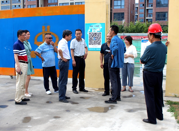 隨后,楊戰(zhàn)社副校長一行來到了科技一條街項目工地。在聽取了工程進度安排、工程質(zhì)量把控、人員管理,以及暑假工作安排等情況的匯報后,楊戰(zhàn)社副校長深入施工現(xiàn)場就工程的安全保障措施進行了檢查,并對工地安全生產(chǎn)提出要求。
