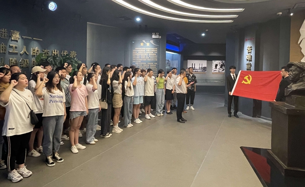 講黨課比賽開始前,學(xué)校組織各院(系)新發(fā)展黨員代表在鐵人王進喜紀(jì)念館集中進行了入黨宣誓活動,在黨委組織部常務(wù)副部長種宇宏老師的帶領(lǐng)下,全體新發(fā)展黨員代表面對黨旗,高舉右手莊嚴(yán)宣誓,表達了對黨的鄭重承諾和為黨的事業(yè)奮斗終生的決心。