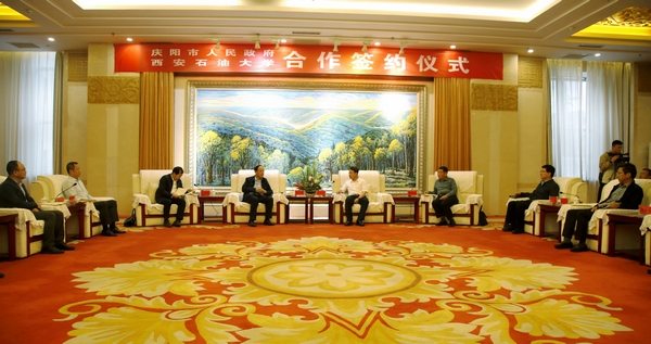 儀式上,慶陽(yáng)市委副書記、市長(zhǎng)盧小亨代表市委、市政府對(duì)賽云秀書記、李天太校長(zhǎng)一行來(lái)慶陽(yáng)洽談校地合作表示歡迎,對(duì)西安石油大學(xué)助力慶陽(yáng)市發(fā)展表示感謝,并對(duì)慶陽(yáng)市情概況和經(jīng)濟(jì)社會(huì)發(fā)展情況進(jìn)行了介紹。他指出,慶陽(yáng)是甘肅的石油天然氣化工基地、長(zhǎng)慶油田主產(chǎn)區(qū),油氣資源豐富,發(fā)展能源化工產(chǎn)業(yè)具備堅(jiān)實(shí)基礎(chǔ),同時(shí)有著“紅色圣地、岐黃故里、農(nóng)耕之源、能源新都”的美譽(yù),“十四五”時(shí)期將著力加大“五區(qū)一中心”建設(shè)力度;西安石油大學(xué)是西北地區(qū)惟一一所以石油石化為特色的高等學(xué)校,學(xué)科門類齊全,師資力量雄厚,科研實(shí)力強(qiáng)勁,為國(guó)家油氣勘探開發(fā)和區(qū)域經(jīng)濟(jì)社會(huì)發(fā)展做出了重要貢獻(xiàn)。此次慶陽(yáng)市人民政府與西安石油大學(xué)簽署合作框架協(xié)議,對(duì)于校地雙方進(jìn)一步拓展合作領(lǐng)域、深化合作層次具有重要意義。希望雙方以簽署合作框架協(xié)議為契機(jī),在能源開發(fā)、科技攻關(guān)、人才培養(yǎng)等領(lǐng)域深化拓展合作內(nèi)容;希望西安石油大學(xué)選派專家教授、創(chuàng)新創(chuàng)業(yè)團(tuán)隊(duì)來(lái)到慶陽(yáng),開展全方位、多層次、寬領(lǐng)域的交流合作,為慶陽(yáng)經(jīng)濟(jì)高質(zhì)量發(fā)展助力加油。
