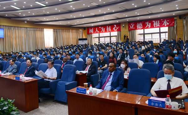 中國東盟教育交流周執(zhí)行秘書長劉寶利,我校黨委書記賽云秀,中共陜西省委教育工委、陜西省教育廳二級巡視員高巍,我校校長李天太,埃塞俄比亞駐華大使館副館長德瓦諾·卡德爾·哈吉,東北石油大學校長蔣明虎,中國石油長慶油田分公司副總經(jīng)理余浩杰,西安市科技局副局長樓文曉共同點亮啟動球,宣布“絲路能源教育科技產(chǎn)學研聯(lián)盟”正式成立。