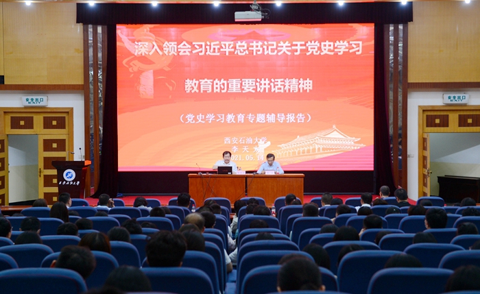 514日下午,校長(zhǎng)、黨委副書記李天太在雁塔校區(qū)學(xué)術(shù)報(bào)告廳作了題為《深入領(lǐng)會(huì)習(xí)近平總書記關(guān)于黨史學(xué)習(xí)教育的重要講話精神》及《國(guó)際國(guó)內(nèi)石油天然氣與新能源發(fā)展形勢(shì)及莘莘學(xué)子的擔(dān)當(dāng)使命》的黨史學(xué)習(xí)教育專題輔導(dǎo)報(bào)告。學(xué)生工作部、研究生工作部、團(tuán)委全體人員,全體輔導(dǎo)員,雁塔校區(qū)研究生黨員代表、本科生代表等共300余人聆聽(tīng)了報(bào)告。張木副書記主持報(bào)告會(huì)。
