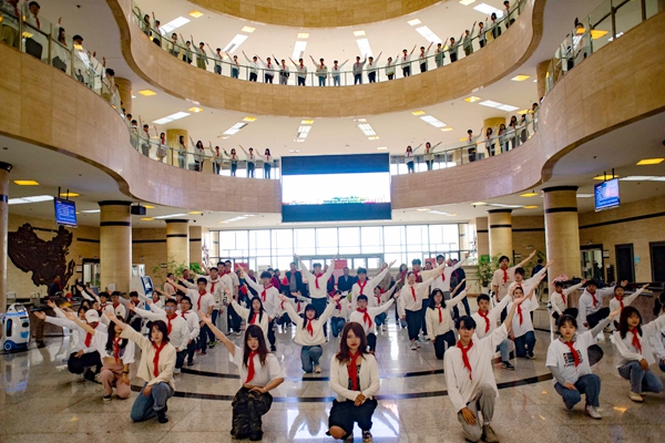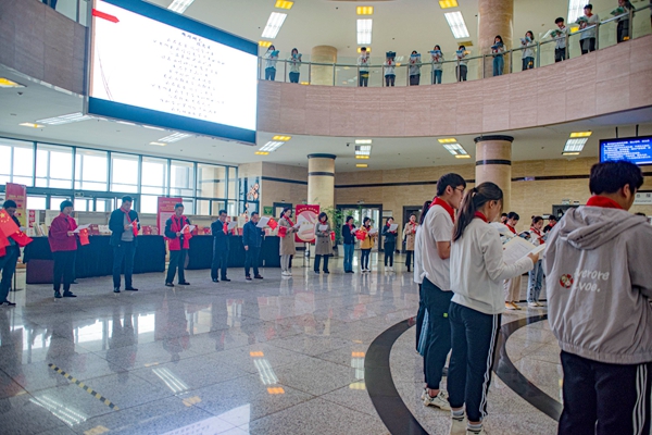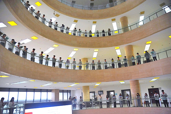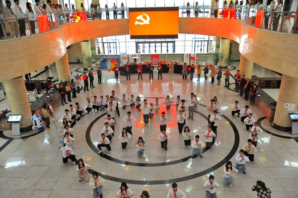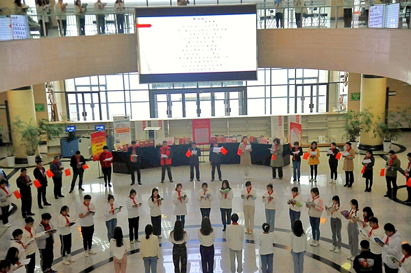 4月21日上午,在鄠邑校區(qū)墨香濃郁、書香四溢的圖書館大廳,以“銘記光輝歷史,創(chuàng)造美好未來”為主題的圖書館2021年校園文化活動在師生共同參與的快閃活動中拉開了帷幕。李華副校長,各職能部門負責人、各院系副書記,100余名同學(xué)們一起參加了啟動儀式。