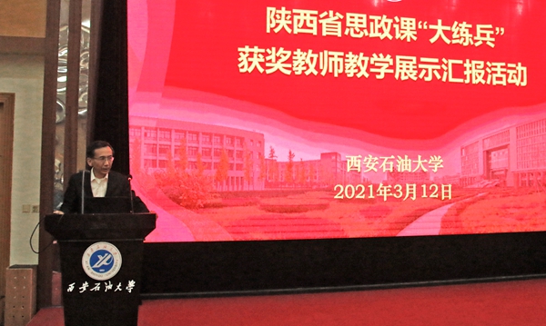 為深入學習貫徹習近平總書記在學校思想政治理論課教師座談會上的重要講話精神,發(fā)揮示范引領作用,提升教師教育教學水平,提高課堂育人質量,3月15日至4月16日,學校舉辦“陜西省思政課‘大練兵’獲獎教師教學展示匯報系列活動”。校黨政領導出席展示匯報活動。相關職能部門、院系負責人,全校14個院系654名教師參加。