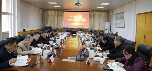 4月9日上午,校黨委理論學(xué)習(xí)中心組2021年第3次學(xué)習(xí)會在雁塔校區(qū)行政樓五樓會議室召開。與會人員集中學(xué)習(xí)了習(xí)近平同志《論中國共產(chǎn)黨歷史》和《中國共產(chǎn)黨簡史》等四本黨史學(xué)習(xí)教育指定書目的部分章節(jié),專題學(xué)習(xí)了習(xí)近平《論黨的宣傳思想工作》部分章節(jié),并結(jié)合各自工作實際和學(xué)習(xí)體會,圍繞“黨的初心使命”開展研討。黨委理論學(xué)習(xí)中心組成員參加會議,黨委書記賽云秀主持會議。