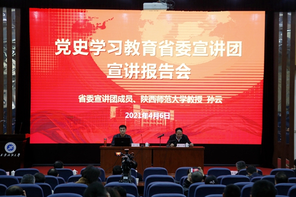 孫云教授為我校師生作了題為《學(xué)習(xí)百年黨史,牢記初心使命》的宣講報(bào)告。他從“深入學(xué)習(xí)領(lǐng)會(huì)習(xí)近平總書(shū)記關(guān)于黨的歷史的重要論述,充分認(rèn)識(shí)開(kāi)展黨史學(xué)習(xí)教育的重大意義”“認(rèn)真研讀黨史基本著作,全面了解中國(guó)共產(chǎn)黨百年奮斗的光輝歷程和歷史性貢獻(xiàn)”“深刻把握開(kāi)展黨史學(xué)習(xí)教育的重點(diǎn)”“開(kāi)展黨史學(xué)習(xí)教育,要學(xué)懂弄通做實(shí)習(xí)近平新時(shí)代中國(guó)特色社會(huì)主義思想”四個(gè)方面,介紹了開(kāi)展黨史學(xué)習(xí)教育的重大意義、重點(diǎn)內(nèi)容和工作要求。他通過(guò)列舉大量豐富翔實(shí)的史料和事例,深刻闡明中國(guó)共產(chǎn)黨踐行初心使命的百年奮斗歷程和歷史性貢獻(xiàn);強(qiáng)調(diào)要聯(lián)系陜西實(shí)際,利用我省豐富的紅色文化資源,推動(dòng)學(xué)習(xí)教育扎實(shí)深入開(kāi)展,引導(dǎo)黨員干部做到學(xué)史明理、學(xué)史增信、學(xué)史崇德、學(xué)史力行。