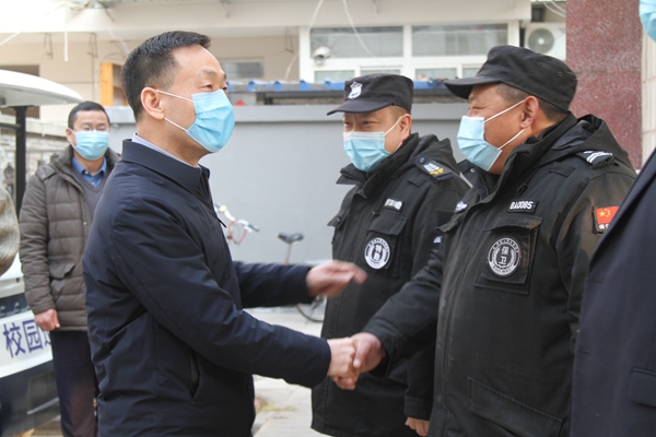 雷西合副書記、蘇文甫副校長與值班人員親切交談,詳細了解了各部門的假期工作狀況,并代表學校對在疫情防控期間堅守崗位一線的教職工表示新年的慰問與祝福,對一線教職工的辛勤付出表示感謝。雷西合副書記、蘇文甫副校長談到,在疫情防控期間,正是有了一線教職工在假期堅守崗位任勞任怨地奉獻,才為我們換來了平安穩(wěn)定的校園環(huán)境;要始終把一線教職工的安危冷暖掛在心上、抓在手上,把學校的關懷送到一線教職工身邊,確保他們度過一個溫暖祥和的新春佳節(jié)。