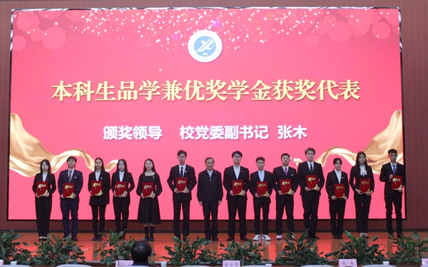 張木、陳軍斌、李華等校領(lǐng)導(dǎo)分別為獲得各級各類獎(jiǎng)學(xué)金、榮譽(yù)稱號的先進(jìn)個(gè)人和集體,省部級以上學(xué)科競賽、創(chuàng)新創(chuàng)業(yè)大賽、共青團(tuán)工作及新冠肺炎疫情防控奉獻(xiàn)獎(jiǎng)的獲獎(jiǎng)代表頒獎(jiǎng)。