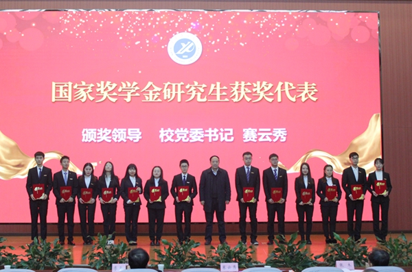 賽云秀書記為獲得2020年國家獎(jiǎng)學(xué)金的本科生、研究生代表以及2020年校級“十佳大學(xué)生”稱號的學(xué)生頒發(fā)榮譽(yù)證書。