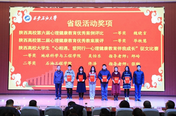 學(xué)生工作部部長(zhǎng)趙健宣讀了《關(guān)于對(duì)2020“油緣心理”戰(zhàn)疫心理援助志愿者進(jìn)行表彰的決定》《關(guān)于第五屆“陽(yáng)光護(hù)航”心理育人宣傳季及第二屆“溫暖前行”心理健康文化節(jié)先進(jìn)的表彰決定》以及《西安石油大學(xué)關(guān)于表彰首屆心理健康教學(xué)大賽獲獎(jiǎng)教師的決定》。