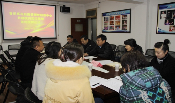 為推進校內協(xié)同育人機制,11月25日上午,我校音樂系與后勤管理處幼教中心共建校內實習基地簽約授牌儀式在音樂系會議室舉行。副校長蘇文甫,后勤管理處及幼教中心、音樂系相關負責人參加會議。儀式由音樂系黨總支書記孟開元主持。