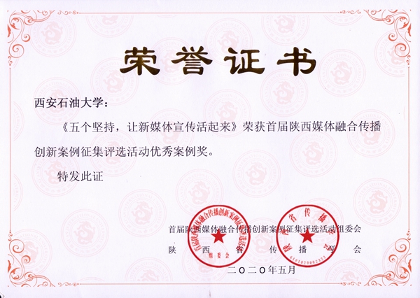 日前,備受傳媒界關(guān)注的首屆陜西媒體融合傳播創(chuàng)新案例征集評(píng)選揭曉,西安石油大學(xué)官方微信以《五個(gè)堅(jiān)持,讓新媒體宣傳活起來(lái)》案例入選榜單。