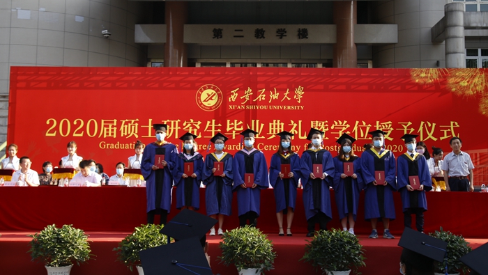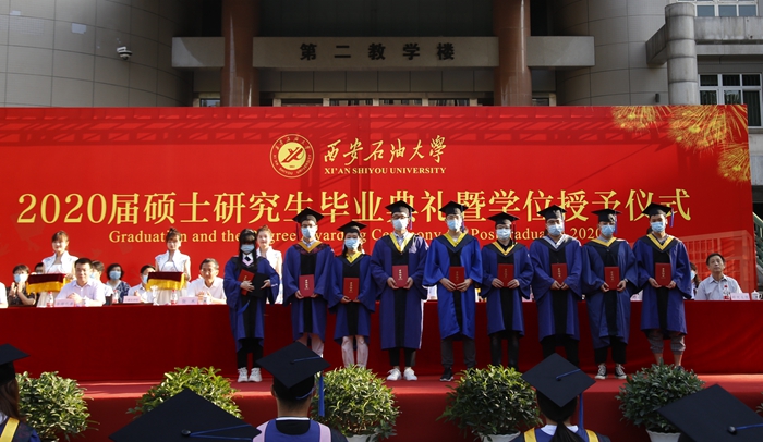 副校長(zhǎng)李華宣讀了學(xué)?!段靼彩痛髮W(xué)關(guān)于授予常耀恒等918名研究生碩士的決定》《西安石油大學(xué)關(guān)于表彰2020年優(yōu)秀碩士學(xué)位論文作者及指導(dǎo)教師的決定》。校黨委副書(shū)記張木宣讀了學(xué)?!段靼彩痛髮W(xué)關(guān)于表彰2020屆優(yōu)秀畢業(yè)生的決定》《西安石油大學(xué)校友總會(huì)關(guān)于聘任2020屆年級(jí)校友理事的決定》。校領(lǐng)導(dǎo)為優(yōu)秀畢業(yè)生、校友理事代表頒發(fā)證書(shū)、聘書(shū)。