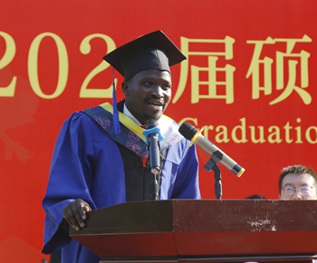 碩士研究生代表、材料科學(xué)與工程學(xué)院黨墨含同學(xué),留學(xué)生代表、來(lái)自烏干達(dá)的石油工程學(xué)院羅納德同學(xué)作了發(fā)言。