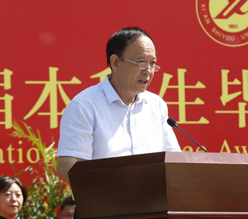 教師代表、三級教授、石油工程學(xué)院院長周德勝向畢業(yè)生贈言。他告訴同學(xué)們,畢業(yè)后要繼續(xù)保持青春的激情和追求真理的勇氣,繼續(xù)保持讀書的習(xí)慣,繼續(xù)熱愛在這里度過四年美好年華的西石大,老師們永遠(yuǎn)是同學(xué)們的堅(jiān)強(qiáng)后盾,母校永遠(yuǎn)是同學(xué)們的精神家園。