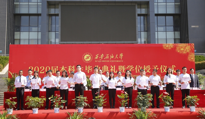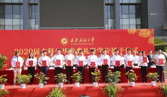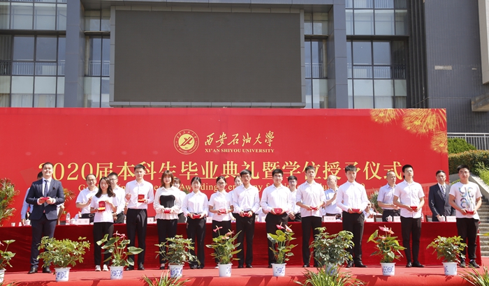 典禮上,校黨委書記賽云秀宣讀《西安石油大學(xué)關(guān)于表彰2020屆優(yōu)秀畢業(yè)生的決定》,校黨委副書記張木宣讀《西安石油大學(xué)校友總會關(guān)于聘任2020屆年級校友理事的決定》,副校長陳軍斌宣讀《西安石油大學(xué)關(guān)于2020屆本科學(xué)生準(zhǔn)予畢業(yè)、頒發(fā)畢業(yè)證和授予學(xué)士學(xué)位的決定》。
