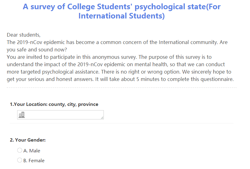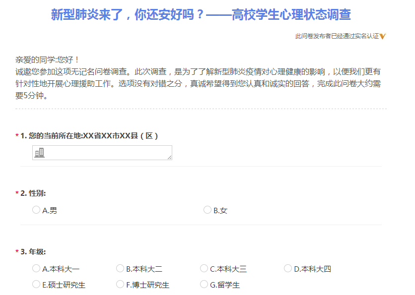 (新型肺炎來了,你還好嗎?--疫情期間心理狀況調研(高校版))