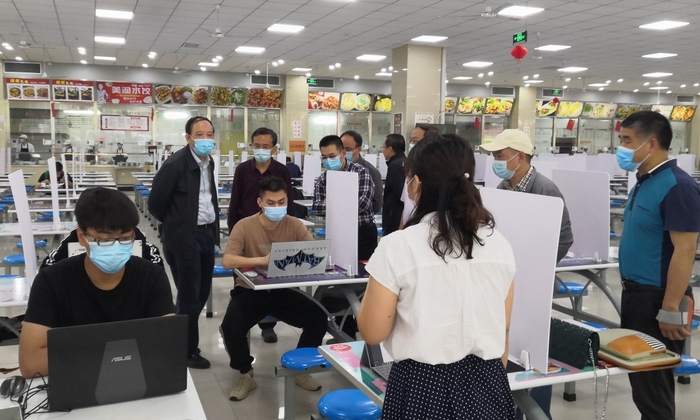 座談結(jié)束后,賽書記一行先后到校園環(huán)道、餐廳實(shí)地檢查校區(qū)環(huán)境以及服務(wù)保障等方面情況。在餐廳內(nèi),賽書記親切詢問就餐學(xué)生返校后學(xué)習(xí)、生活等方面的情況,同時與正在餐廳指導(dǎo)學(xué)生畢業(yè)設(shè)計(jì)的老師進(jìn)行交流,了解目前學(xué)生畢業(yè)設(shè)計(jì)完成情況。賽書記勉勵在場學(xué)生勤奮學(xué)習(xí)、刻苦鉆研,如期保質(zhì)完成畢業(yè)設(shè)計(jì),進(jìn)一步明確個人就業(yè)方向;同時要增強(qiáng)防護(hù)意識,配合學(xué)校做好疫情防控工作,共同度過畢業(yè)前最后的校園時光。