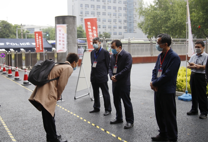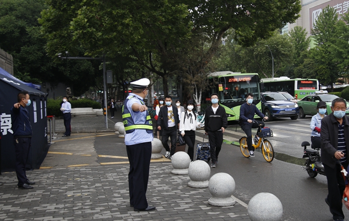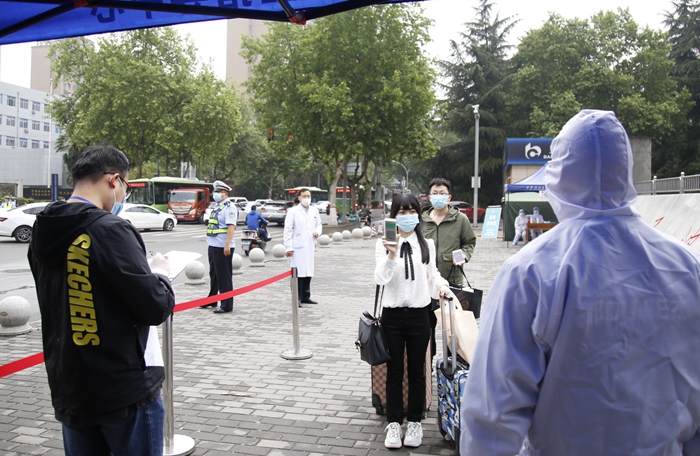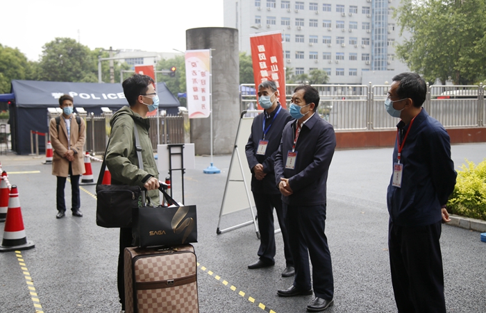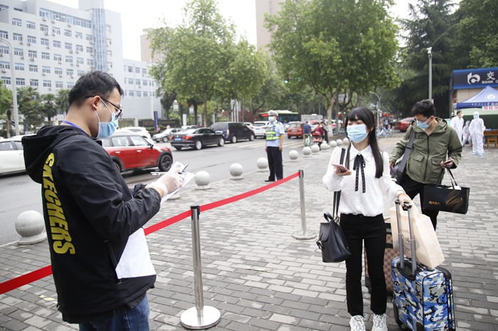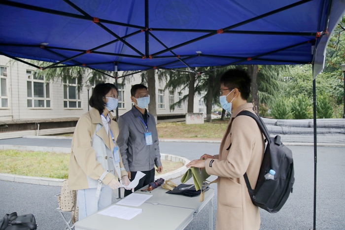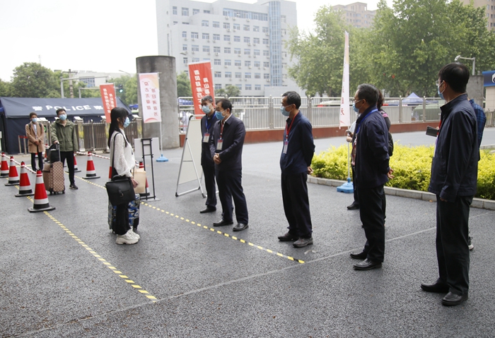 5月7日上午9時,首位返校學生、經(jīng)濟管理學院研究生劉雪夢順利抵達學校。在現(xiàn)場工作人員的指引下,劉雪夢依次完成了更換口罩、測量體溫、行李和手部消毒、核查健康碼(綠碼)、身份核實等流程后順利進入校園。校黨政領導賽云秀、李天太、張木、李華、蘇文甫、程永清先后到報到區(qū)迎接返校同學,校領導與同學們親切交談,對返校同學表示歡迎,深入了解大家的思想狀況、身體狀況、假期學習生活、論文撰寫情況、就業(yè)情況。校領導鼓勵同學們堅定戰(zhàn)勝疫情的信心,嚴格落實學校、學院各項疫情防控措施,同時要珍惜最后的校園時光,順利完成學業(yè)任務。