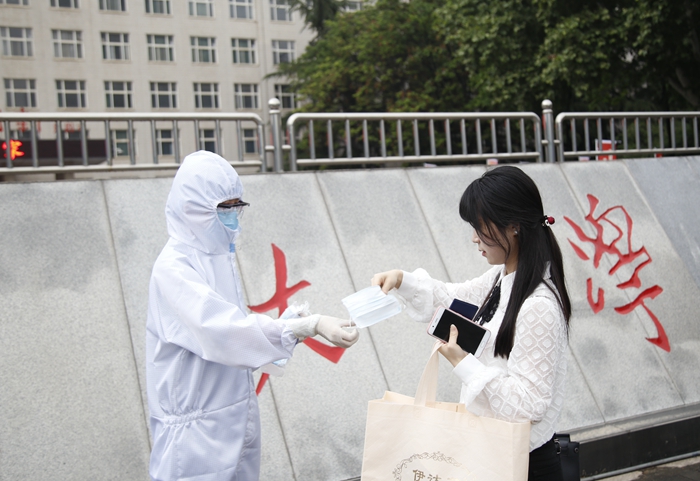 在各學院的報到點,同學們還領取了學校為大家準備的放有口罩、溫度計、酒精消毒棉片等防護用品的防疫愛心包?!敖K于回到了久別的校園,感覺非常親切,學校的安排非常細致,還給我們免費發(fā)送了一次性口罩和體溫計,既細心又貼心。學校所做的一切復學準備都很充分,我要為學校點贊?!笔凸こ虒W院研究生劉毅說。
