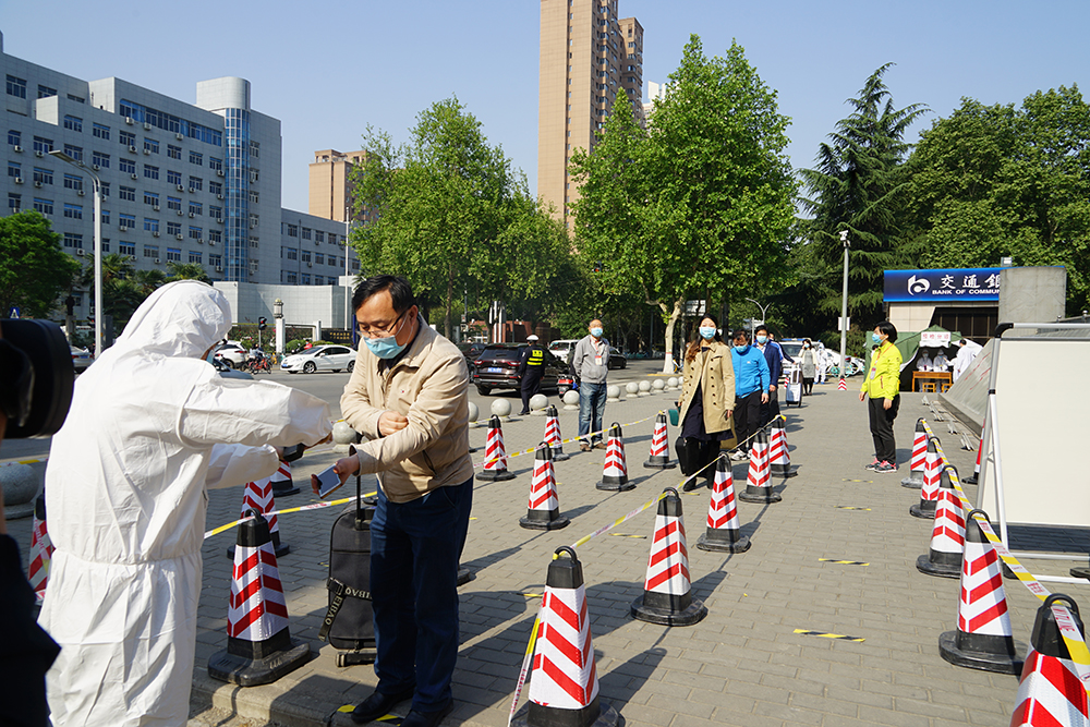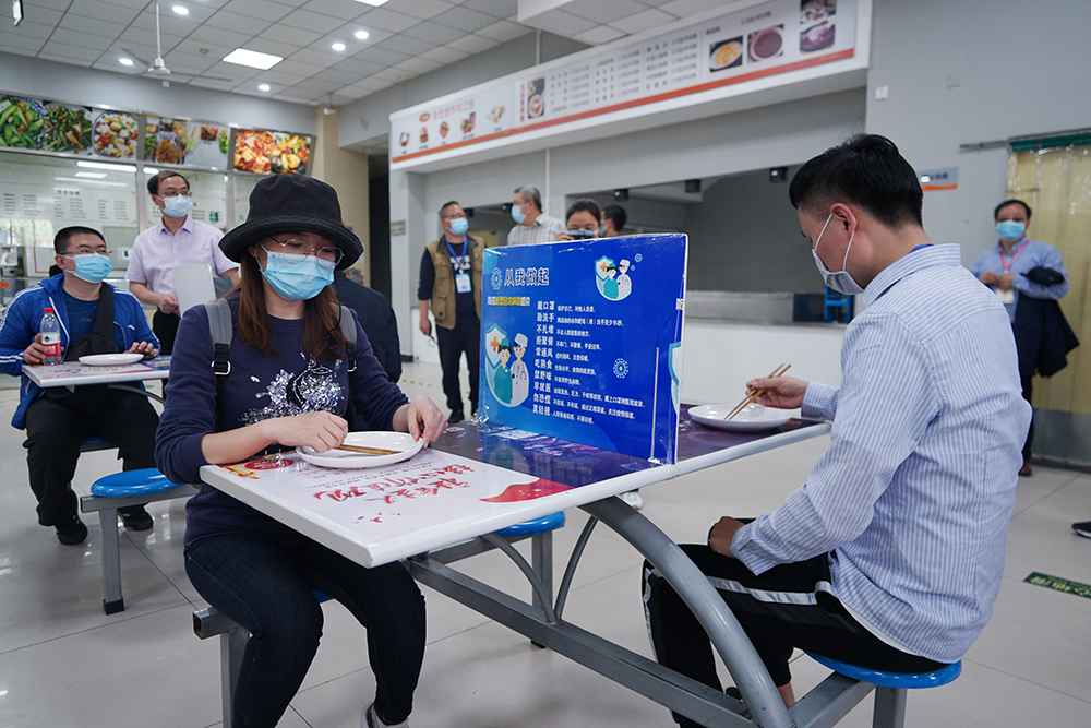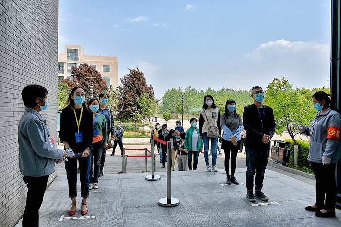 在食堂,演練按照事先制定的錯時用餐、快速取餐、間隔就餐的方案,從間隔一米排隊、測量體溫、洗手取餐、間隔用餐到餐后離開食堂等,對整個用餐流程進行了模擬。在教室、實驗室、圖書館等場所,也嚴格按照間隔一米排隊、測量體溫、靠右行走的程序演練。如發(fā)現(xiàn)體溫異常學生,工作人員將其引導至臨時留觀點進行體溫復(fù)測,若復(fù)測體溫仍異常,工作人員逐級報告疫情防控工作領(lǐng)導小組,安排醫(yī)生和救護車將體溫異常學生送至隔離區(qū)。