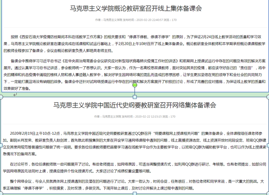 在2020年春季學(xué)期的思政課教學(xué)中,馬克思主義學(xué)院按照教育部社科司《新冠疫情防控期間高校思想政治理論課教學(xué)組織工作規(guī)程》,扎實開展工作,確保思政課教學(xué)有序有效開展。