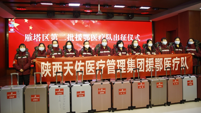 18日上午九點(diǎn),宋彥霞等15名醫(yī)護(hù)人員在西安天佑醫(yī)院參加了雁塔區(qū)第二批援鄂醫(yī)療隊(duì)出征儀式,隨后將乘坐包機(jī)火速趕赴湖北地區(qū)投入救治工作。