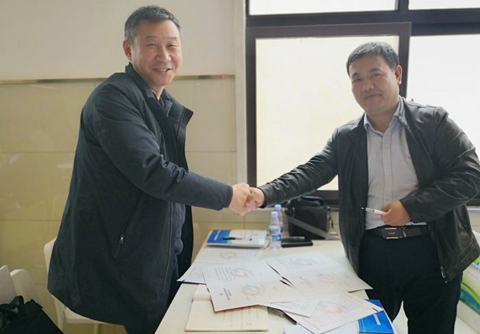 18日當天,黃風林與宋紹富帶領科研團隊赴咸陽參加供、需雙方對接會,經過2小時的商談,黃風林教授團隊的解決方案獲得技術需求方陜西華浩軒新能源科技開發(fā)有限公司的認可,雙方現(xiàn)場簽訂了120萬元“烷基化、芳構化裝置技術改造”技術轉讓意向合同。