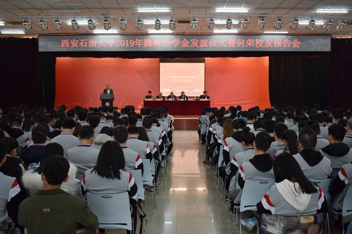 11月20日下午,2019年騰輝助學(xué)金發(fā)放儀式暨何榮校友報(bào)告會(huì)在鄠邑校區(qū)騰輝大學(xué)生活動(dòng)中心舉行。校黨委副書(shū)記張木,西安騰輝電氣有限公司總經(jīng)理、“騰輝助學(xué)金”主要出資人、我校校友何榮出席儀式。學(xué)生工作處、合作發(fā)展處、機(jī)械工程學(xué)院負(fù)責(zé)人,2019年騰輝助學(xué)金獲得者,西安騰輝電氣有限公司員工代表,以及各院系師生代表共500余人參加了活動(dòng)。