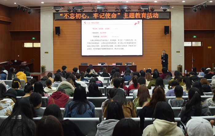 根據(jù)學(xué)?!安煌跣摹⒗斡浭姑敝黝}教育工作安排,11月15日下午,程永清副校長(zhǎng)以《牢記初心使命,提高黨性修養(yǎng),堅(jiān)定文化自信——做擔(dān)當(dāng)民族復(fù)興大任的共產(chǎn)黨員》為題,在鄠邑校區(qū)人文經(jīng)管樓118室為人文學(xué)院全體學(xué)生黨員和各年級(jí)學(xué)生共300余人講授了專題黨課。