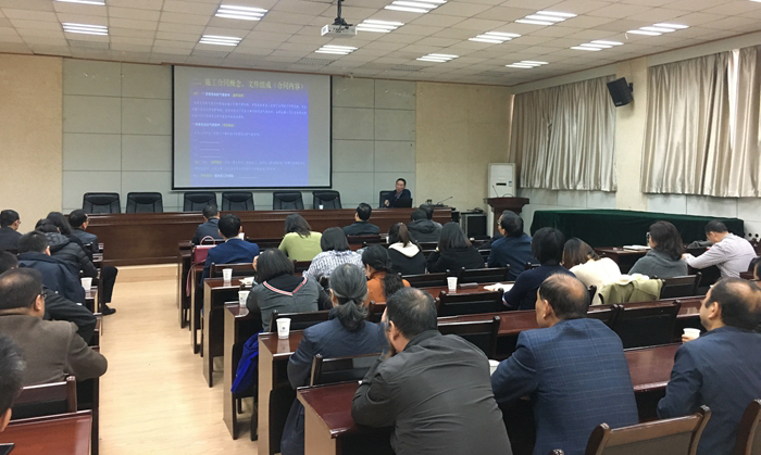 為深入開展“不忘初心、牢記使命”主題教育,進(jìn)一步檢視問題、整改落實(shí),11月11日上午,基建處以規(guī)范建筑工程合同管理為主題召開了集體培訓(xùn)會。會議邀請西安建筑科技大學(xué)碩士生導(dǎo)師、新校區(qū)建設(shè)工程部總工程師徐雷教授擔(dān)任主講。我校副校長楊戰(zhàn)社,基本建設(shè)領(lǐng)導(dǎo)小組成員單位負(fù)責(zé)人參加講座。