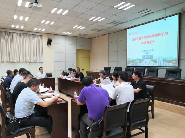 高度重視,召開專門會議安排部署。我校黨委高度重視師德建設(shè)月活動,校黨委召開會議研究宣誓誓詞,組織各院(系)書記召開教師宣誓活動暨師德建設(shè)活動安排布置會,對教師節(jié)系列活動做出詳細安排、提出具體要求。教師工作部下發(fā)《關(guān)于開展教師節(jié)系列活動的通知》,明確活動主題,細化活動內(nèi)容,規(guī)范活動流程,并將教師課堂著裝規(guī)范納入學習內(nèi)容。
